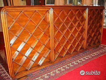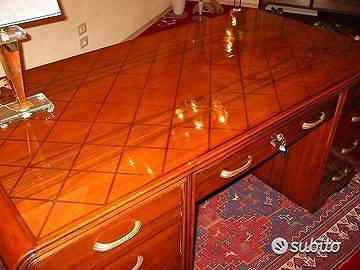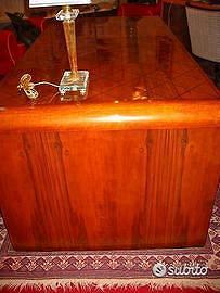 Scrivania degli anni '50 di Arch. Mario Quarti. Il motivo dei rombi del piano, tipico motivo stilistico dell'architetto ritorna in rilievo nel lato opposto ai cassetti conferendole una spiccata personalità pur nel rispetto di una linea estremamente classica per l'epoca Largh. Cm 185; prof. Cm 89; h. cm 79. Euro 9000 AUTENTICA