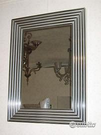 1950 Specchio Fontana Arte. RARO. Design Specchio italiano di cristallo con cornice lavorata a cannette argentate. H. cm 101 largh. Cm 76; largh. Cornice in diagonale cm 12.7.Euro 5000