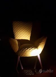 In un contesto di arredo, questa poltrona potrebbe essere utilizzata come pezzo statement in un ambiente moderno, industriale o eclettico, magari accostata a materiali grezzi come cemento o metallo per un bel contrasto.