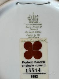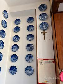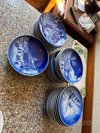 Sulla base del caratteristico blu cobalto, delle scene invernali e delle date impresse, la tua è una splendida collezione di Piatti di Natale Royal Copenhagen (conosciuti in Danimarca come Juleaften). Ecco i dettagli principali su ciò che possiedi: 1. Il Marchio Sebbene non possa vedere il retro, questi piatti sono quasi certamente della Royal Copenhagen. Esiste una piccola possibilità che alcuni siano della Bing & Grøndahl (un altro storico produttore danese), poiché entrambi utilizzano la stessa tecnica di decorazione sottosmalto blu e bianca. • Royal Copenhagen: Il marchio sul retro presenta tre linee ondulate (che rappresentano i tre stretti di mare della Danimarca). • Bing & Grøndahl: Il marchio presenta tre torri. 2. La Tradizione Questa tradizione è iniziata nel 1908 per Royal Copenhagen. Ogni anno viene creato un nuovo disegno e gli stampi vengono distrutti la sera di Natale. Questo significa che quel particolare motivo non potrà mai più essere prodotto, motivo per cui l'anno è così chiaramente visibile sul fronte (come nei tuoi piatti del "1999" e "1981"). 3. Piatti identificati nelle foto Nelle tue immagini si riconoscono alcuni anni iconici: • 1975: "La residenza natalizia della Regina" (Palazzo di Marselisborg). • 1981: "Natale all'ammiraglio" (caratterizzato dai pinguini, molto amato). • 1974: "Crepuscolo invernale" (mostra un spazzacamino sui tetti). • Piatto della Sirenetta: Probabilmente fa parte di una serie speciale dedicata alle fiabe di Hans Christian Andersen.