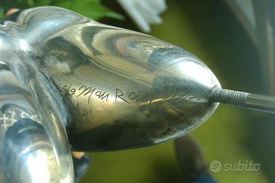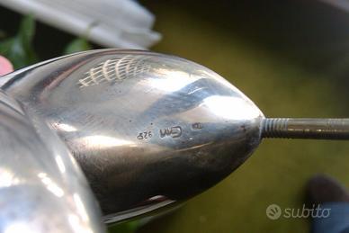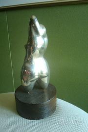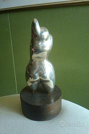 Scultura in argento 925 k. inserita in una base cilindrica in legno