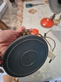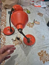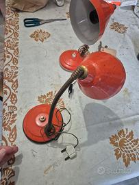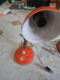 2 abasciur da tavolo anni 70 funzionanti di colore arancione 1 ammaccata e mostra i segni del tempo l'altra non ne mostra. sono di materiale di latta no plastica.