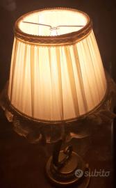 La base(diam 8cm), decorata con foglie d'acanto in rilievo , da cui parte lo stelo con una leggera spirale e termina col supporto in ceramica originale x la lampadina ( non fornita x sicurezza).