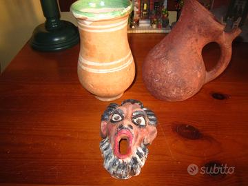 2 anfore+maschera in terra cotta