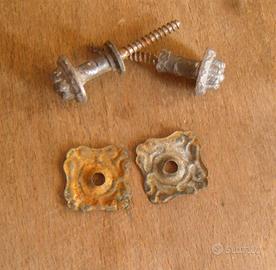 2 ANTICHE VECCHIE MANIGLIE A POMELLO IN FERRO PIENO CON RONDELLA QUADRATA -