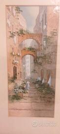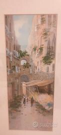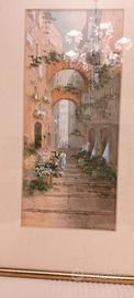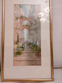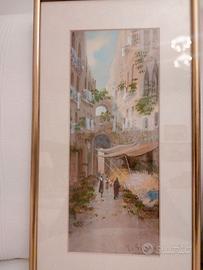 2 antichi acquerelli, incorniciati, fine 800, per collezionisti ed amanti del genere firmati Yves Gianni ( artista italiano XIX-XX sec. attivo tra la fine del XIX e l'inizio del XX secolo, noto principalmente per le sue gouache e acquerelli) che ritraggono scorci di Napoli, in particolare scena di strada con archi, figure, fiori e bucato steso ad asciugare e mercato con elementi architettonici. La famiglia Gianni è stata una nota famiglia di pittori e vedutisti italiani, attiva principalmente tra Napoli e Malta tra il XIX e l'inizio del XX secolo. I due quadri sono alti 44 cm e larghi 24,5 ; i soli acquerelli misurano invece 32 x 13,5 cm. Spedisco solo. Una firma è un po' coperta dal passpartou. Per altre info, prima e nn dopo l'eventuale acquisto.