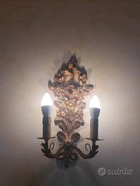 2 applique da parete vintage in legno e metallo