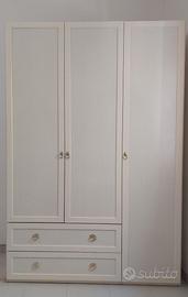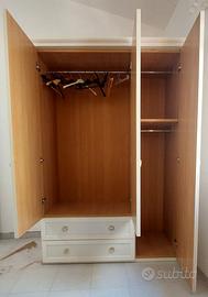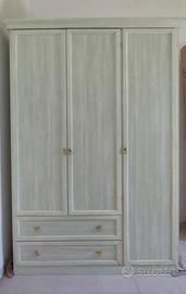 Vendo due armadi con finitura color crema/beige e un altro color verde chiaro.