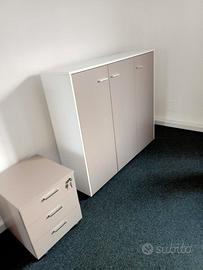ARMADI A TRE ANTE 2 armadi a 3 porte Misure 140 x 37 px 124 h Usato pochissimo. Prezzo per singolo armadio NB:possibilita' di abbinare gli armadi ai banconi reception,scrivanie ....