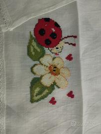 vendo per inutilizzo ,sono ricamati a mano dalla sottoscritta e lavorato all'uncinetto dalla sottoscritta