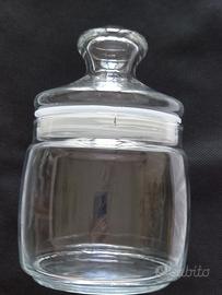 Due barattoli in vetro trasparente con tappo a tenuta.