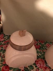 Barattoli in porcellana e particolari in legno con guarnizione salva aromi