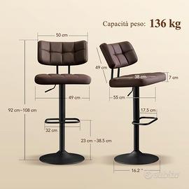 Schienale curvo, seduta larga 50 cm, Girevole 360°, Altezza Regolabile (92-108 cm), Poggiapiedi larghi 32 cm, Marrone.