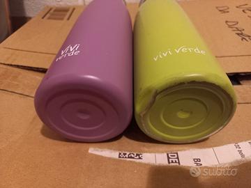 N 2 borracce termiche brand Viviverde coop da 500 ml, tutte in acciaio inox alimentare e svariate opzioni di utilizzo. Tutte con tappo a vite ed in buone condizioni estetiche, presente qualche piccola ammaccatura sul fondo o leggeri graffi ma che non ne pregiudicano assolutamente l'utilizzo o le funzionalità previste. (vedi foto)
