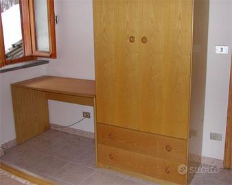 2 Camere singole con Armadio alto, comodino, scrivania e mensole libri a muro, tutto coordinato in pregiato legno di Abete chiaro, accogliente e luminoso, realmente come nuovi, Vendo a €. 990.