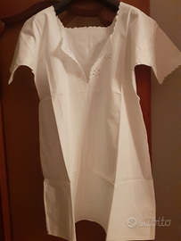 2 camice da notte bianche ricamate e cucite a mano , manica corta , lunghe fino al ginocchio taglia XL nuove anni 70 vintage