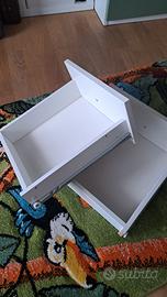 Accessorio (già assemblato come da foto) con 2 cassetti per il mobile kallax, bianco lucido, in ottime condizioni completo di tutti gli elementi per il fissaggio al mobile. Difetto di scollatura nella parte nascosta (vedi una delle foto) che non compromette il montaggio.