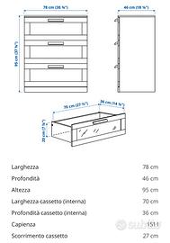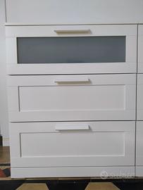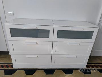 2 cassettiere Ikea Brimnes 3 cassetti, bianco/vetro smerigliato, misure 78x46x95cm come in foto. Condizioni perfette. Vendute in coppia a 130€ oppure singolarmente a 65€ l'una. Ritiro a Milano e trasporto a carico dell'acquirente