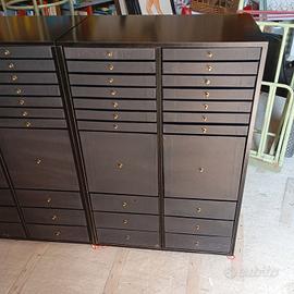Vendo coppia di cassettiere in legno e cassetti in cartone con ruote guide in ferro . Possibilità anche di acquistare separatamente .Il prezzo si intende caduna.