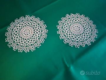 DUE centrini lavorati a mano a chiacchierino , ecru’ rotondi diametro cm 25 7