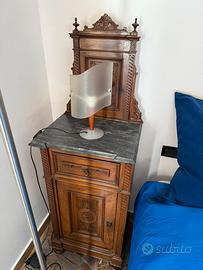 2 comodini alti in legno e marmo Antichi, rari , da collezione