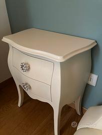 Privato vende per cambio arredo, 2 comodini e 1 comò tinta avorio con pomelli in swarovski. Tenuti bene. Misure Comodini L 50 P 30 H 60, misura Comò L 104 P 42 H 84 cm. Ritiro a mano. Euro 370.