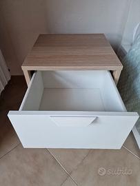 Il comodino è in ottime condizioni, usato poco e sempre tenuto con cura. I cassetti scorrono perfettamente e sono spaziosi, ideali per riporre libri, caricabatterie e oggetti personali.
