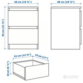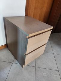 n. 2 Comodini con 2 cassetti, impiallacciato rovere mordente bianco, marca IKEA, modello MALM. no spedizioni, ritiro a mano
