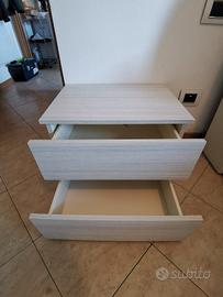 Vendita di due comodini con due cassetti, color celeste chiaro. Vendita di entrambi i comodini insieme. Mondo convenienza. H 40cm L 55cm P 40cm