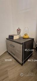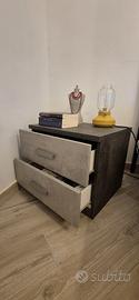 Coppia di comodini modello Elena con zoccolo e due cassetti. Stile moderno/industriale, colori ossido e cemento. Come nuovi. Prezzo 100 euro- vendibili separatamente