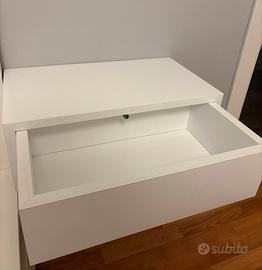 Vendo 2 Comodini sospeso , Bianco Opaco con apertura a pressione Misure: Lunghezza 45 cm Altezza 15.5 cm Profondità 25 cm