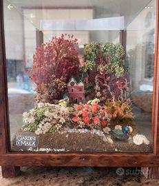 2 composizioni artistiche decirative in teca di vetro con base in legno I giardini di Maila misure la piu grande 30x20 altezza 28 prezzo 35€ la piu piccola misura 20x20 altezza 24 prezzo 25€