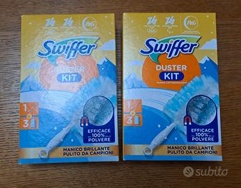 n. 2 confezioni Swiffer Duster KIT, manico brillante pulito da campioni con 3 piumini catturapolvere cad. (come da foto)