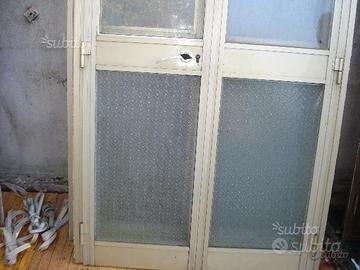 fisso, tamponate con vetro trasparente 4mm, con traverso centrale che divide i 2 vetri: NELLA parte superiore vetro trasparente, NELLA parte inferiore vetro lavorato. CONTROPORTE dotate di serratura di sicurezza a 3 punti di chiusura.