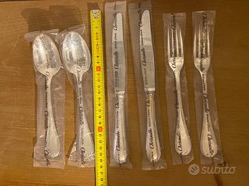 Servizio completo per due coperti, posate Christofle modello Rubans nuove e ancora nel cellophane originale.