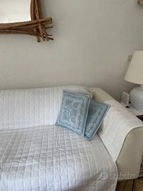 Due Copridivano trapuntato a quadri bianco per divano a tre posti nuovi mai usati con elastici per non muoversi.