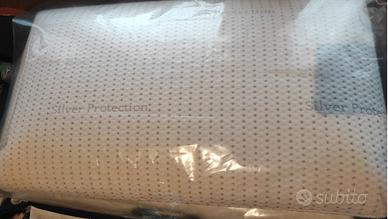 Cuscino in memory foam federa in cotone e fili silver - mai usato. In negozio venduto a 45€ + Cuscino da letto memory foam ortocervicale mai usato, adatto per chi dorme sul fianco. Copertura in cotone 100%. In negozio venduto a 79€