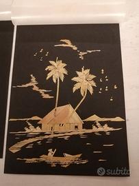 Vendo 2 DIPINTI con colori a olio su foglia di PIPAL - Bodhi o aÅ>vattha (fico sacro).