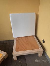 Vendo 2 divanetti artigianali in legno, solidi e versatili, ideali per esterno (o interno), completi di cuscinoni.