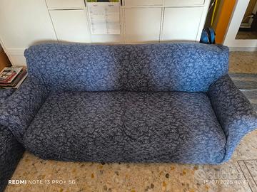 2 Divani: un 3 posti letto con rete ortopedica a doghe di legno, cuscini in piuma d'oca, colore tessuto blu + un 2 posti stesso modello e colore del 3 posti ma solo divano, sempre con cuscini schiena in piuma d'oca. Vendita a corpo, non separata, ritiro a carico acquirente, zona Roma nord-est (montesacro-alto), tessuti integro ma leggermente scoloriti, in omaggio copridivano tonalità blu sempre usato. Foto su richiesta