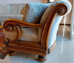 2 divani a 2 posti con struttura in legno di noce e rivestimento in tessuto antimacchia sistemato recentemente