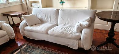Vendo 2 divani dimensioni cm. 215x90x90 h. a prezzo simbolico di 150 euro. la fodera di 1 schienale presenta un alone giallino probabilmente lavabile.