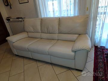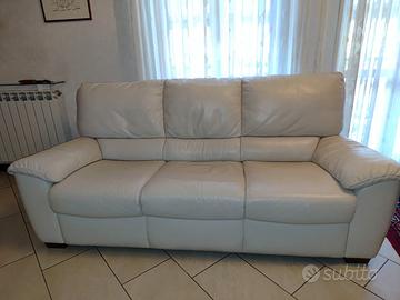 vendesi 2 divani 3 posti in pelle bianchi. uno dei 2 divani con schienali reclinabili.
