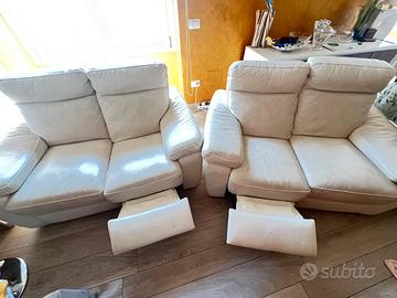 Vendo due divani Château d’Ax recliner in ottime condizioni, ideali per chi cerca comodità e stile in salotto.Comdozioni buone ,colore bianco tenzeza poco beige,tessuto in pelle, Meccanismo recliner funzionante Seduta comodissima e ampia Struttura solida e di qualità. Non è prevista spedizione Trasporto e ritiro sono interamente a carico dell’acquirente pagamento alla consegna.