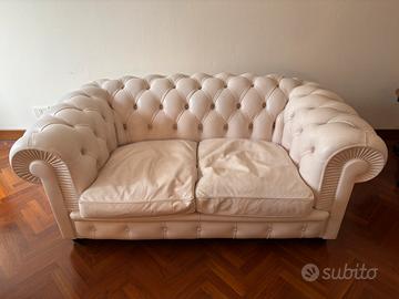 Bellisima coppia di divani a due posti Chester. Pelle in ottimo stato di conservazione senza particolari segni di usura. Il prezzo si intende per la coppia di divani. I divani sono ritirabili a Ravenna.