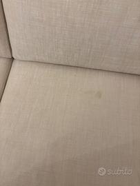2 divani color panna in buono stato con piedini di legno. presenta qualche segno dovuto al tempo ma comunque qualcosa di risolvibile. due divani a 150 €.