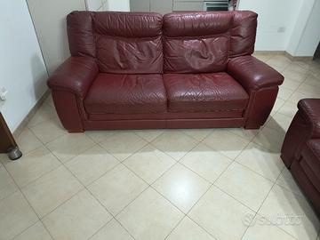 vendo due divani bordeaux in vera pelle della ditta Chiarelli uno da 3 posti (lunghezza 198, profondità 87 ,alto 93 cm) uno da 2 posti ( lunghezza 166, profondità 87 e altezza 93)in buone condizioni .