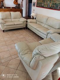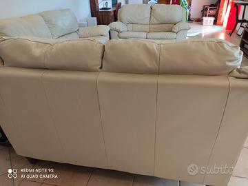 Vendo per sgombero 2 divani in PELLE color ghiaccio in ottimo stato e ben tenuti, come si può vedere dalle foto. Si trovano in una seconda casa, acquistati 8 anni fa a 1900€ e usati due mesi l'anno.