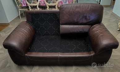 Vendo (anche separatamente) 2 divani in pelle in buono stato, completamente sfoderabili, ottima struttura, lunghezza divano grande cm 205, divano piccolo cm 175 euro 400 cadauno