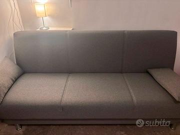 Vendo 2 divani-letto con due vani contenitori usati pochissimo e comprati circa 6 mesi fa. Il prezzo attuale in negozio è di 198 euro per ogni divano. il primo divano è completamente nuovo e privo di difetti, il secondo presenta una piccola scucitura all'angolo in alto a destra, come visibile in foto(facilmente riparabile).